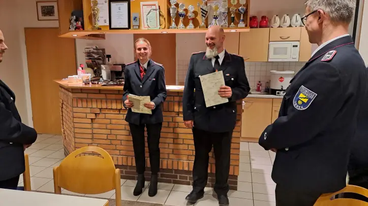 Es wurden in der JHV 2 Kameraden neu aufgenommen. Gleichzeitig verließen 2 aktive Mitglieder 2025 (jeweils Wohnortwechsel) die Wehr. Zum 31.12.2025 zählte die Wehr 38 aktive Mitglieder, davon 8 Frauen und 1 Zweitmitgliedschaft, 1 Kameradin in der Reserveabteilung, 26 Kameraden in der Ehrenabteilung, 16 Mitglieder in der Jugendfeuerwehr und 156 fördernde Mitglieder. Die Wehr hat 15 Atemschutzgeräteträger. Die Erhöhung der Anzahl der aktiven Mitglieder in 2026 ist für die Wehr ein wichtiges Ziel.