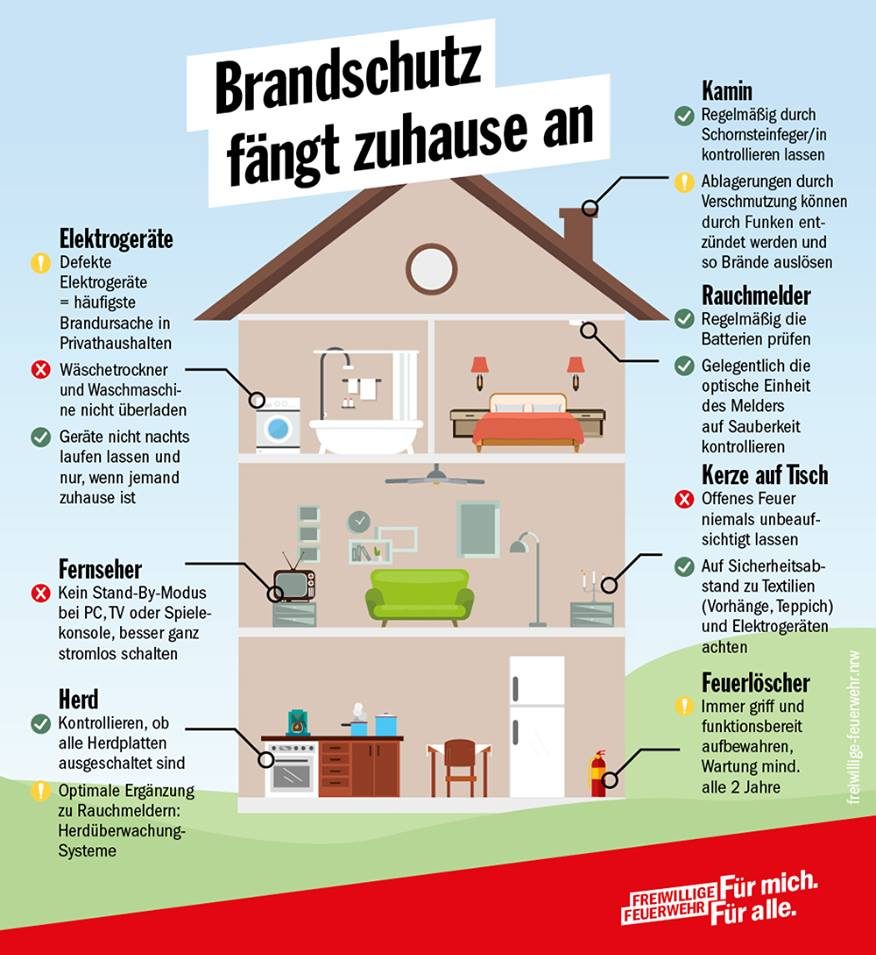 Rund 600 Menschen kommen in Deutschland jährlich bei tragischen Haus- und Wohnungsbränden ums Leben, darunter leider auch viele Kinder. Die Ursachen für derartige Brandereignisse sind vielschichtig: von auf dem Herd oder im Ofen vergessenen Speisen über defekte Elektro-Geräte und Leitungen, unbeaufsichtigtes offenes Feuer (Kerzen, Adventskranz etc.) bis hin zum Einschlafen mit einer brennenden Zigarette.
