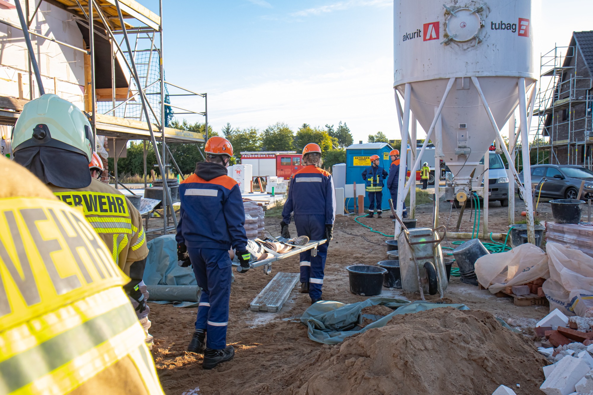 Am nächsten morgen erfolgte vor dem Frühstück der nächste Einsatz: Unfall auf einer Baustelle mit einer verletzten Person. Hier konnte das Wissen vom Vorabend angewandt werden: Erkundung, Betreuung, 1.Hilfe, Rettung, Abtransport und Übergabe an den Rettungsdienst.